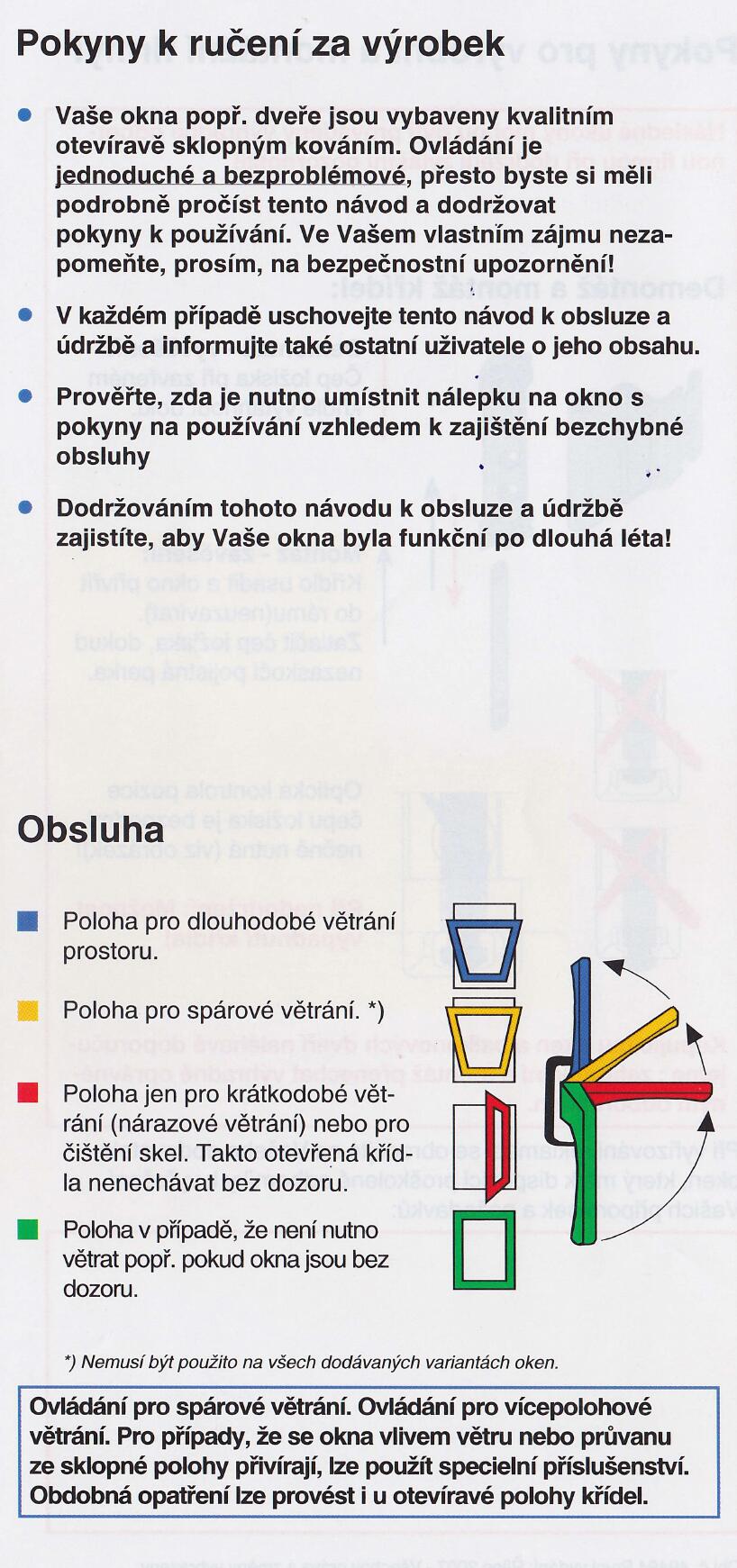 Okna - návod na obsluhu a údržbu